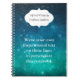 Como escritor inspirador, muitas vezes "recebo" poemas e textos quando não estou no meu computador. É aí que um caderno de linhas se torna útil. Este caderno tem uma linda capa com um céu estrelado azul e turquesa no qual você pode digitar uma das suas próprias peças de escrita. Ela aparecerá como texto branco no fundo mais escuro. Você também pode personalizar com seu nome. O cabeçalho, que atualmente diz "Escrita Inspirada por", também pode ser revisado facilmente.