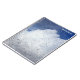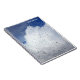 Um notebook com uma foto de gotículas de chuva em uma janela à esquerda depois de um chá de chuva de abril com uma grande nuvem de cúmulo de fluffy no fundo. Edite o texto para adicionar seu próprio título ou nome.