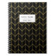 Caderno Espiral Chevron Dourado em Chic Moderno de Fundo Preto