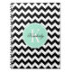 Caderno Espiral Chevron preto e branco com monograma da hortelã