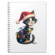 Caderno Espiral Christmas Cat Tuxedo black cat xmas lights kitty c