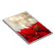 A design apresenta um arranjo de poinsettias, plantas conhecidas pela sua folhagem vermelha e verde e que, por isso, são amplamente utilizadas em apresentações florais de Natal.
