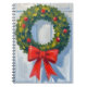 Christmas Wreath Red Bow White Watercolor Holiday Notebook