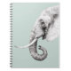 Caderno Espiral Cinza de Desenho de Elefante Fundo Verde