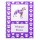 A silhueta branca / italiana Greyhound de animais de estimação é roxa, rosa, amarela e azul, podendo ser personalizada com uma imagem do seu próprio cão. O presente ideal para os amantes de cães, este notebook na moda, em breve, se tornará seu companheiro de viagem para reunir todos os seus pensamentos e memórias com seu amado amigo peludo.
