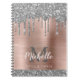 A cintilação prateada moderna goteja o nome e o notebook monograma. Este design apresenta cinza prateada (cinza) brilho brilho pingado no fundo cor-de-rosa dourado com metal escovado personalizado, com modelo de texto inicial e nome personalizado personalizado. Presente feminino perfeito. Por favor, note que esta design é um efeito fotográfico impresso. Se precisar de ajuda ou itens correspondentes, entre em contato comigo.