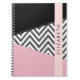 Caderno Espiral Cinza Zigzag, Cinza Chevron, Rosa, Seu Nome