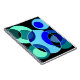 Padrão abstrato, colorido e geométrico, vários tons de círculos de interseção verdes e azuis sobre fundo preto