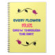 Design de tipografia com uma citação motivacional inspiradora que diz que "cada flor deve crescer através da terra. Colocado sobre um fundo amarelo pálido. Uma ilustração de flor rosa vermelha enquadra o topo e o fundo do texto.
