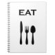 Cozinha apresentando uma faca preta, garfo e colher CITE citação de comida. Perfeito para anotar suas receitas favoritas ou tomar notas na escola e no trabalho.