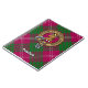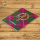 Crachá da crista Clan Crawford rodeado por uma correia e fivela sobre fundo tartano. Texto personalizado.