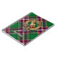 Crachá da crista Clan MacFarlane rodeado por uma correia e fivela sobre o moderno fundo tartano de caça. Custom Text.