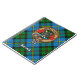 Crachá da crista Clan MacLeod rodeado por uma correia e fivela sobre o fundo de tartã de caça. Custom Text.