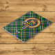 Crachá da crista Clan Scott rodeado por uma correia e fivela sobre fundo de tartã verde. Texto personalizado.