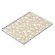 Padrão de superfície contínua com coelhinhos fofos e fofinhos em creme postos em um fundo de cor de aveia com silhuetas de pequenas margaridas. O fundo deste padrão é fixo. Você pode alterar o tamanho e a posição do padrão.