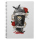 Caderno Espiral Cofin e crânio gótico com Rosa vermelha