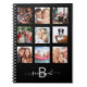 Caderno Espiral Colar de monograma moderno em preto com colagem de