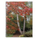 A personal sized, spiral bound notebook that features a photo image of beautiful birches and colorful, autumn maple leaves along a garden path. Leaf color is primarily shades of orange. You may customize your notebook cover to add text if desired. Use as a journal or to keep important notes.