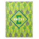 Caderno Espiral Com nome e inicial, tênis verde e roxo