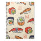 Caderno Espiral Comida sushi, design de padrão uniforme.