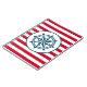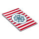 Design náutica com decoração de bússola em fundo listrado vermelho e branco
