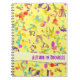Mantenha notas neste caderno espiral personalizado desenhado com um toss de confete colorido sobre um amarelo com uma fita de texto. Preencha o campo modelo com suas palavras, remova o texto e a faixa de opções e/ou clique em personalizar para selecionar um estilo de fonte, tamanho e cor preferidos. Transfira este design para um dos outros produtos escrevendo acima, como o planejador.