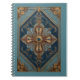O diário Gilded Confluence apresenta um design intrincado e simétrico inspirado em filigranas ornamentadas e harmonia geométrica fluida. Tons ricos de azul-turquesa e azul profundo são sobrepostos com detalhes luminosos em dourado, criando uma sensação de equilíbrio, profundidade e elegância silenciosa. Em seu centro, um motivo circular ancorado na composição simboliza foco, reflexão e continuidade.