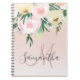 Caderno Espiral Cor-de-rosa moderno e flores com nome