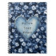 Caderno Espiral Coração das Flores de Denim Branco Azul