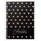 Acessório da na moda e da mesa de escritório com um elegante, giro e bonito rosa de ouro, pequenos corações com um padrão perfeito de fundo preto personalizável com uma personalização simples, mas moderna. Iria fazer um belo retorno ao notebook escolar, anotações e revistas de ideias, ideais tanto para professores quanto para estudantes.