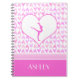 Um caderno cor-de-rosa bonito para gymnasts com um teste padrão macio dos corações da aguarela. Igualmente tem um coração branco grande com uma silhueta cor-de-rosa da ginástica e um campo feito sob encomenda do texto para adicionar seu nome. Use "personalizam-no" o botão para mais opções (que incluem pias batismais diferentes!)