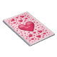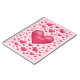 O padrão de corações cor-de-rosa de diferentes tamanhos numa cor de fundo de uma rosa claro. Há uma área de texto personalizável no grande coração no meio.