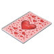 O padrão de corações vermelhos de diferentes tamanhos numa cor de fundo rosa-pincelada. Há uma área de texto personalizável no grande coração no meio.