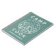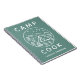 Caderno de cozinheiro de acampamento de verão verde e branco personalizado com um nome. Design moderno com montanhas, uma fogueira, uma floresta, a lua e estrelas, e uma barraca de acampamento.