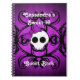 Crânio gótico super fofo Livro de anotações espiralado doce 16 com um motivo úmido a preto sobre fundo de púrpura com listras cor-de-rosa. Decorado como livro convidado, este notebook apresenta um cobrir fino, mas muito brilhante. Adicione o seu nome a ele ou altere o texto de acordo com as suas necessidades.