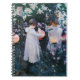Cravo, Lírio, Lírio, Rosa (1885), de John Singer Sargent, é um retrato luminoso que captura duas jovens meninas em um cenário idílico ao ar livre. A pintura retrata as meninas, vestidas com delicados vestidos em tons pastel, acendendo lanternas chinesas em meio a um jardim florido. A obra é renomada pelo uso da luz, particularmente pelo efeito suave e brilhante das lanternas que lançam um brilho suave sobre as figuras e a flora circundante. A maestria de Sargent em capturar os efeitos fugazes de luz e sombra é evidente, com as vibrantes flores de cravo, lírio e rosa apresentadas de forma proeminente. A composição emana uma sensação de inocência, alegria e a beleza efêmera da infância.