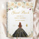 Este elegante e glamouroso e doce livro de hóspedes apresenta uma bela princesa com cabelo vermelho castanho e pele clara em um vestido preto. O texto combina o script manuscrito e as fontes sans serif modernas para um aspecto elegante e sofisticado. Os arranjos florais, borboletas e confete de ouro criam a mistura perfeita de rústicos e quicos. Gráficos por www.etsy.com/uk/shop/SunflowerDayLove