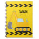 Legal caderno de escavador de construção personalizado para uma criança que adora veículos de construção amarelos em preto e amarelo. Um presente divertido para um menino que ama carros e caminhões. Personalize com o nome do seu filho sob a fita de precaução preto e amarelo.
