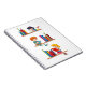 Crianças sentadas em prateleiras lendo livros. Este design parece realmente eficaz neste notebook espiral