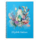 Este notebook mágico de caçador de sonhos apresenta um grande cristal em forma de rasgos com flores delicadas, folhagem e cristais pendurados em um fundo aqua. Personalizado com seu nome. Faz um presente excelente para aniversários, formatura ou Natal!