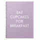 O ditado bonito, COMER CUPCAKES PARA O CAFÉ DA MANHÃ em um fundo lilático, acentua este notebook, fazer-o perfeito como um presente.