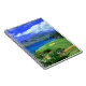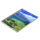 O notebook é mostrado com uma impressão de foto de um belo campo de golfe nos trópicos. Personalize este item ou comprar como está. Imagem do stock