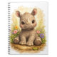 This adorable spiral photo notebook features a sweet baby rhino sitting among colorful flowers, with big expressive eyes and a gentle, heartwarming expression. The soft watercolor style and warm natural tones create a cozy and calming aesthetic.