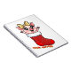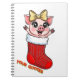 A whimsical hand-drawn illustration of a cheerful cartoon piglet peeking out from a festive red Christmas stocking. Featuring big sparkling eyes, rosy cheeks, and a bright yellow bow, this playful artwork is inspired by classic children’s book styles. The knitted stocking texture with fluffy white trim adds warmth and holiday charm.
