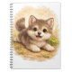 This adorable spiral photo notebook features a playful little puppy with big sparkling eyes and a happy expression, lying on the ground surrounded by soft natural elements. The warm watercolor style and fluffy details create a cozy, joyful, and heartwarming aesthetic.