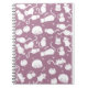 Caderno Espiral Cute White Cats Pattern on Mauve Background