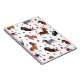Dachês patrióticos vestidos de branco vermelho e azul com estrelas, listras e ossos de cachorro sobre fundo branco.