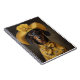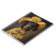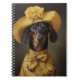 O elegante chic Dachshund no estilo do pintor holandês Frans Hals. Cachorro bonito vestindo um vestido amarelo e chapéu com flores amarelas