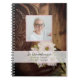 Convide os hóspedes a deixar uma nota em memória do seu ente querido, depois de terem passado com o encantador Livro de convidados do Serviço Funeral Ocidental do Cowboy Boots Country. Este tema rústico de rancho personalizado em forma de chico celebração do livro espiral de tributo de vida apresenta uma fotografia de flores de margarida de rosa claro e botas de cowboy de couro com um fundo de madeira de celeiro castanho. Personalize-o com data de nascimento e morte, nome e imagem. Inspo ou ideia única para uma vaqueira equestre e um evento casual de estilo fazenda.