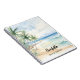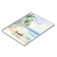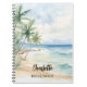 Uma praia tropical, ondas e palmeiras, aquarela. Personalize e adicione o nome da sua dama de honra. Estilo de letra manuscrita preta.